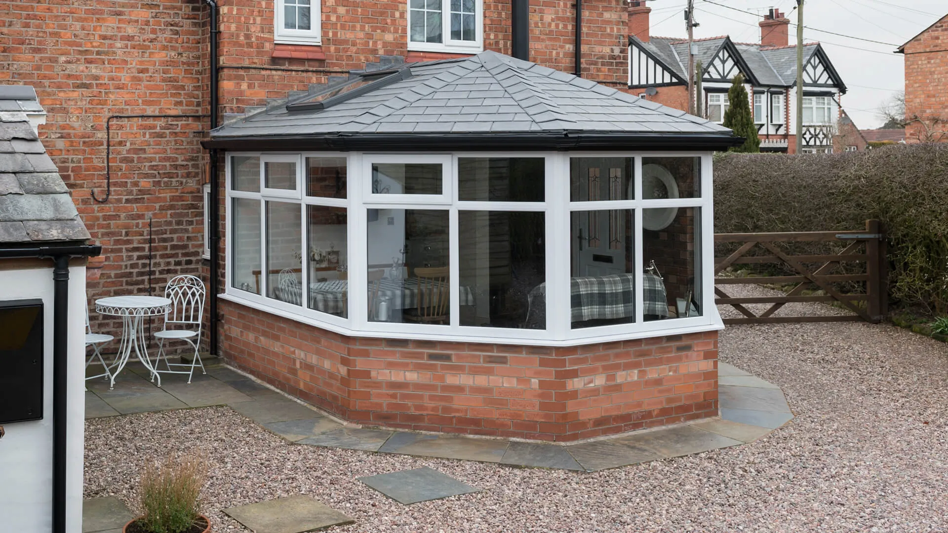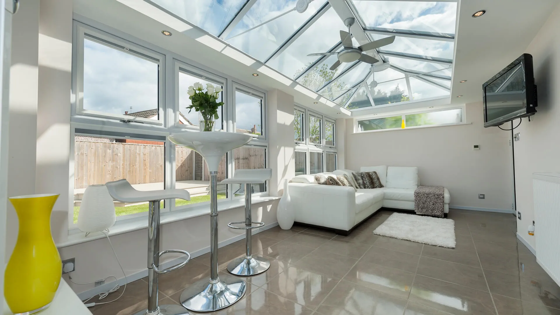 The older the roofing system, the less effective it becomes at insulating a space. This can be solved with a contemporary replacement roof, which will up energy efficiency levels to the necessary standard. We have tiled roofs and glass roofs that are fantastic for accomplishing all year round living.